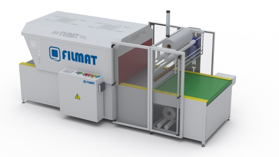 Saraušanās tunelis, kas uzstādīts uz viena rāmja ar mašīnu, kas ietinas uzmavā, kas izgatavota no saraušanās plēves lentes. Iekārta ir pielāgota nepārtrauktai darbībai līnijā, kas ražo dažādus garus izstrādājumus, piemēram: dienasgaismas spuldzes, grīdas sloksnes, caurules, aizkaru stangas, dēļus u.c. (garums no 600 mm līdz 2000 mm). Pēc iepakojumu pārņemšanas ar manipulatoru no ražošanas līnijas vai noliktavas, produkts tiek padots uz speciāli izstrādātiem kabatas ratiņiem. Iepakojums ir ietīts ar folijas uzmavu un metināts gar izstrādājumu. Tiek izmantota staigājoša metināšanas pistole, kas nodrošina augstu efektivitāti. Viss iepakošanas process ir pilnībā automātisks. Izmantotās servo piedziņas ļauj optimizēt iepakošanas procesu. Iekārtas priekšrocība ir iespēja ātri mainīt iesaiņotā iepakojuma garumu. Pārstrādāšanas laiks max 30 min. Tiek izmantota sānu folijas padeve ar žurnālu papildu folijas ruļļiem. Speciāls mehanizēts folijas sadalītājs padod foliju zem metināšanas pistoles 90 grādu leņķī. Tas ļauj mainīt foliju iepakošanas procesā.